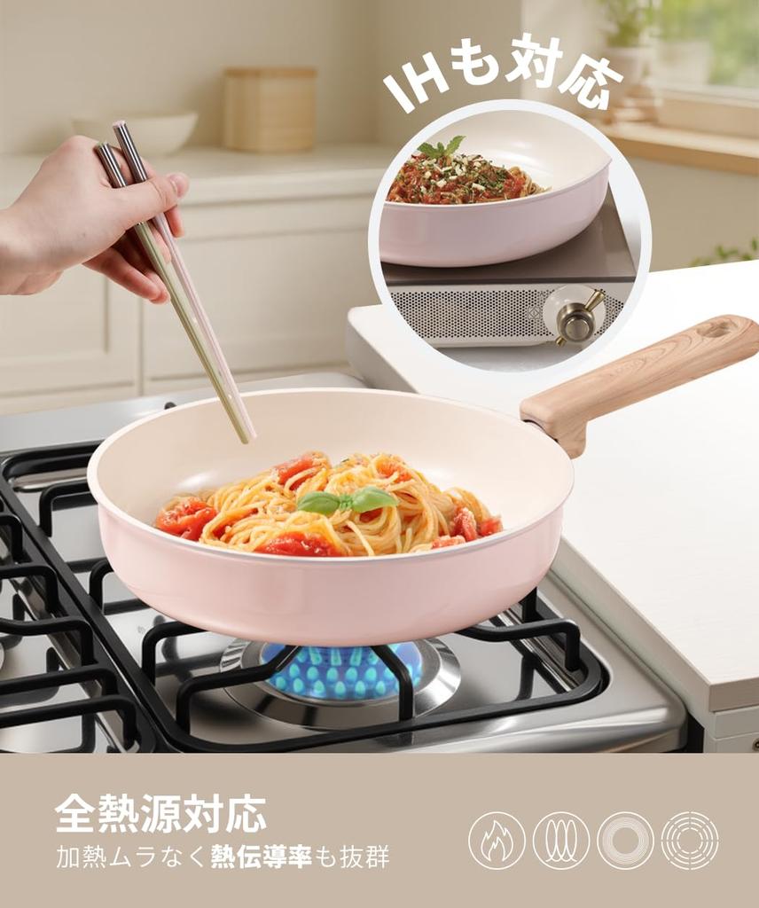 CAROTE Сковорода с керамическим покрытием для индукционных и газовых плит, Легкая в использовании, Идеально подходит для жарки и всех видов нагрева, Розовый цвет вишни, Крышка, 24 см, Не содержит PFAS, свинца, кадмия,