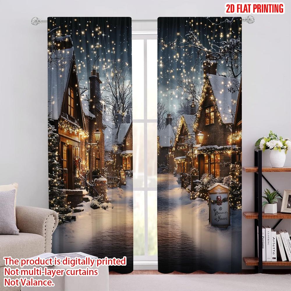 2 шт. 2D плоская печатьРождественские шторы для деревни Рождество Деревенский дом Зима Снежное Рождество Подходит для спальни гостиной