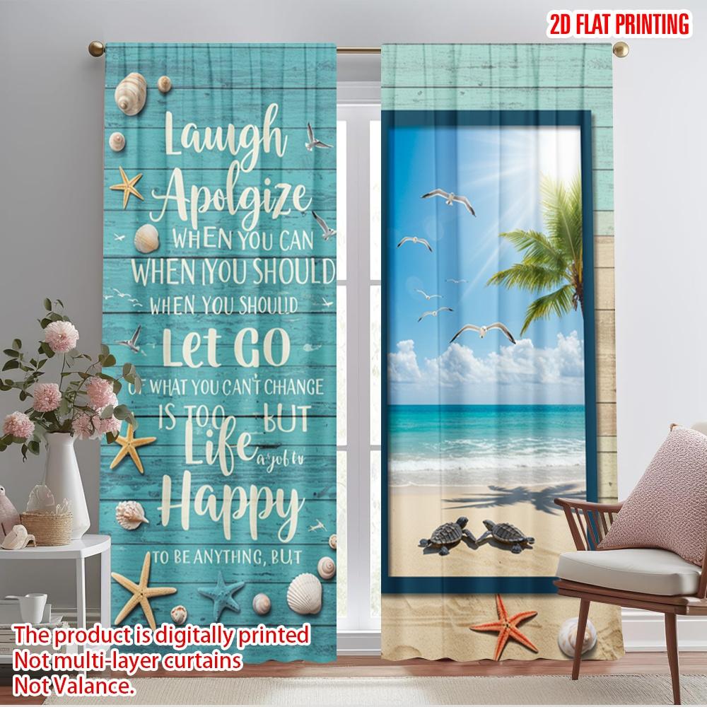 2 шт. 2D плоская печать Шторы для окон Смеяться Извиняться Отпустить Жизнь Счастливый 100% полиэстер Ткань Без электричества Праздничная Стена