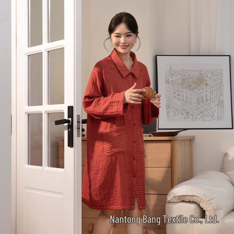 Женский пижамный комплект Little Warm Current 2025 из четырехслойной хлопковой марли с длинным рукавом