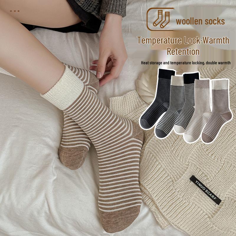 Женские полосатые шерстяные носки до середины икры - Теплые и холодостойкие для осени и зимы — купить товар онлайн с бесплатной доставкой по всему миру!