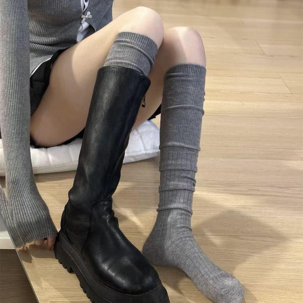 Женские гольфы выше колена в японском стиле с присборками Zhuji – серия Miu, двухслойные гольфы до икры