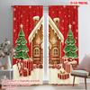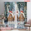 2pcs 2D flat printing Christmas Scene Curtain Gingerbread House Candy Winter Wonderland Polyester Fabric Without Electricity