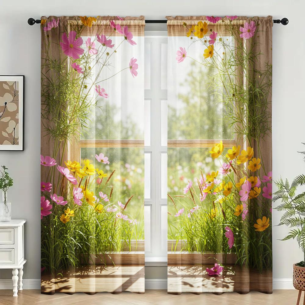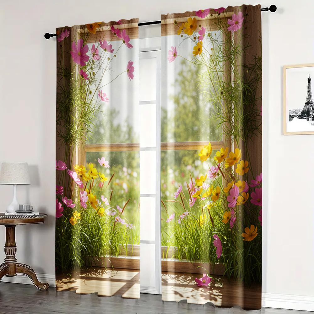 2 шт., Шторы Цветы ко Дню матери Прочная 100% полиэстеровая ткань, Без электричества Праздничные фоны для праздничных украшений
