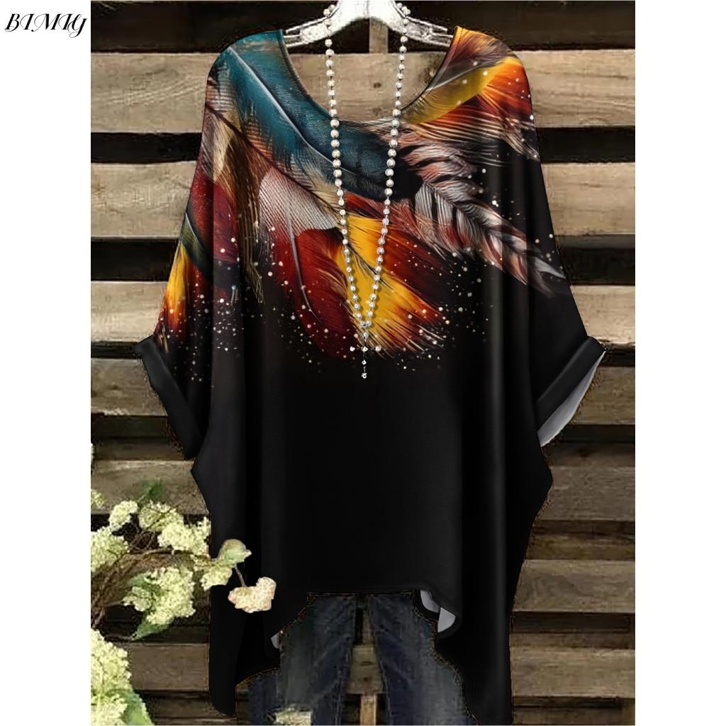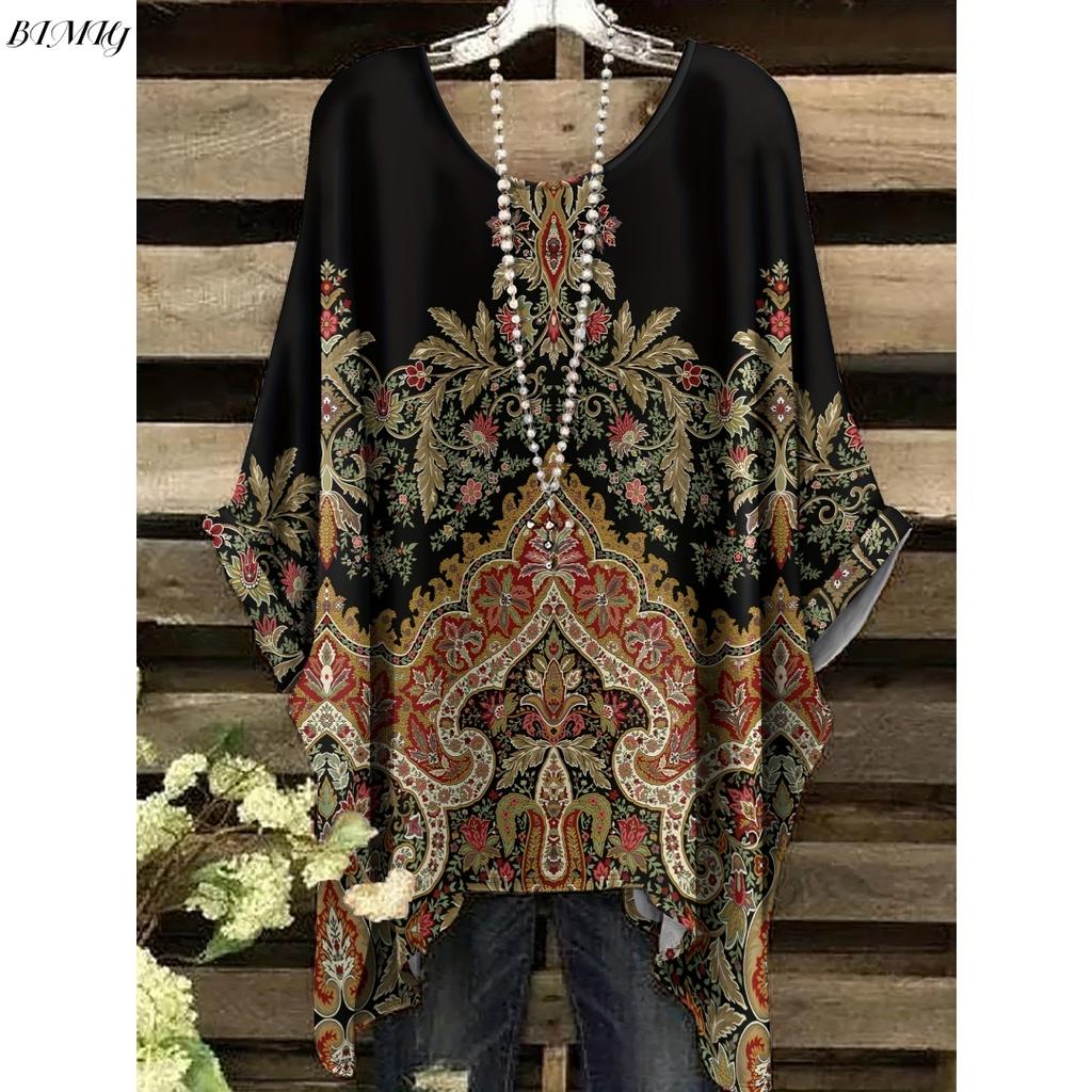 Богемная туника с цветочным принтом больших размеров женская футболка с коротким рукавом и круглым вырезом, повседневный топ, яркий 2025