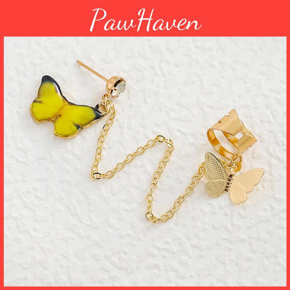 Elegant Alloy Butterfly Stud Earrings With Colorful Geometric Designs