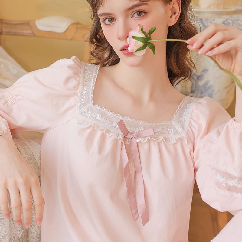 Почувствуйте элегантность и комфорт в этих изысканно разработанных пижамах, идеальных для переходных сезонов весны и осени.. Изготовленная из премиального хлопка, пижама дарит мягкое и дышащее ощущение на вашей коже.. Французский придворный стиль добавляет нотку изысканности, а изысканная вышивка по кружеву подчеркивает их роскошную привлекательность.. С длинными рукавами для дополнительного тепла в прохладные ночи, они являются идеальным выбором как для стиля, так и для отдыха.