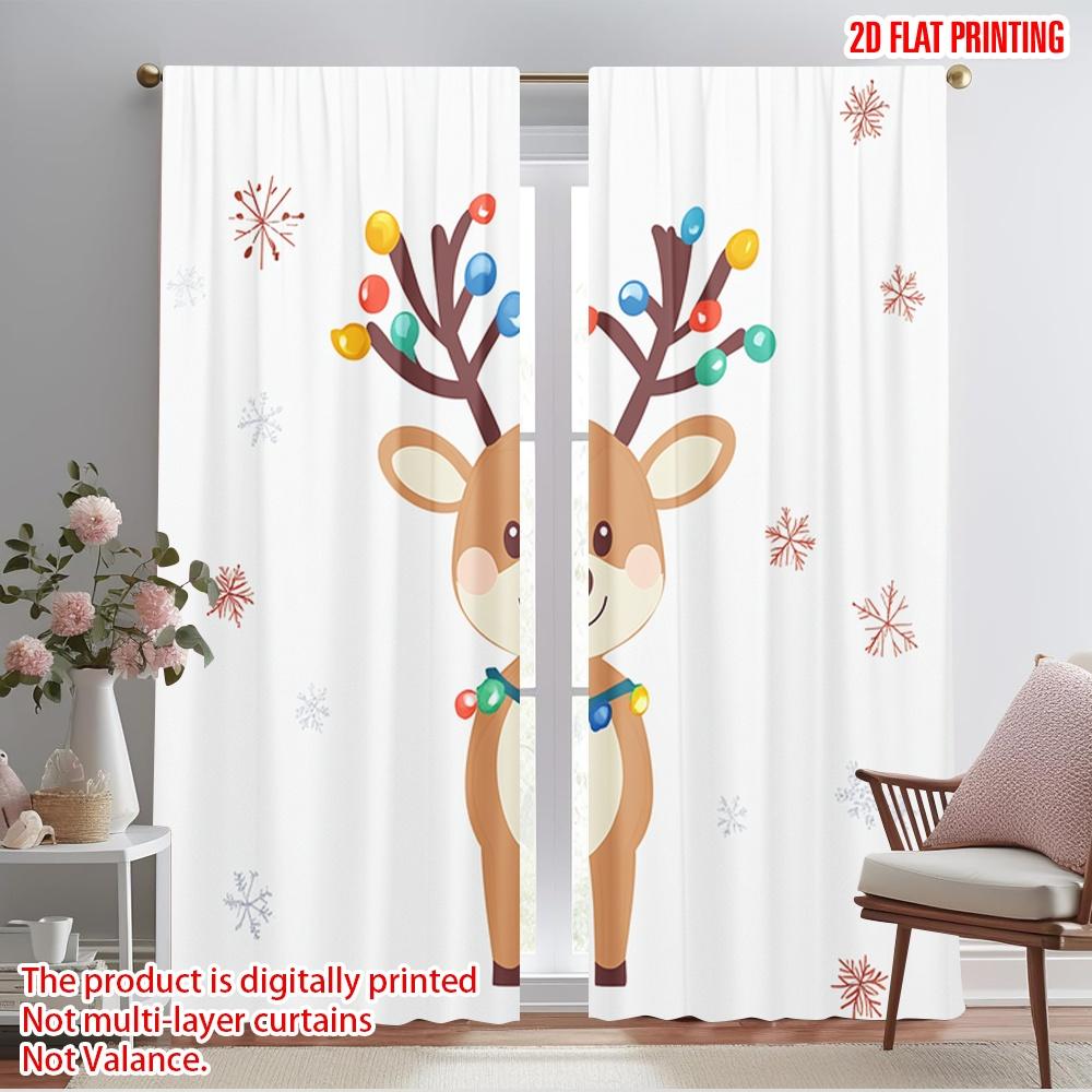 2pcs,2D plane printing Curtain Fabric Cute Christmas Deer Snowfall Holiday (3) Versatile 100% Polyester (without rod)