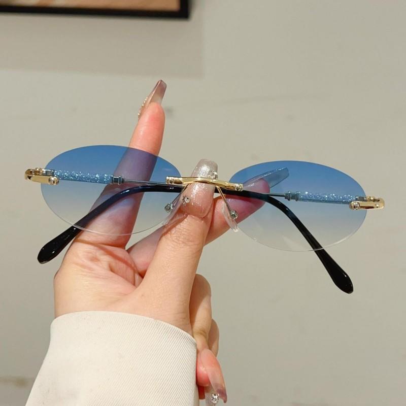 Безободковые овальные солнцезащитные очки Мужские Новая мода Градиентные Уличные Повседневные Очки Женские Трендовый Дизайн Бренда Декор Солнцезащитные Очки