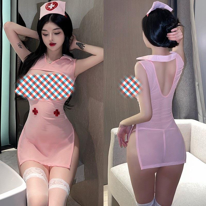 Чувственный просвечивающий дразнящий костюм медсестры для женщин