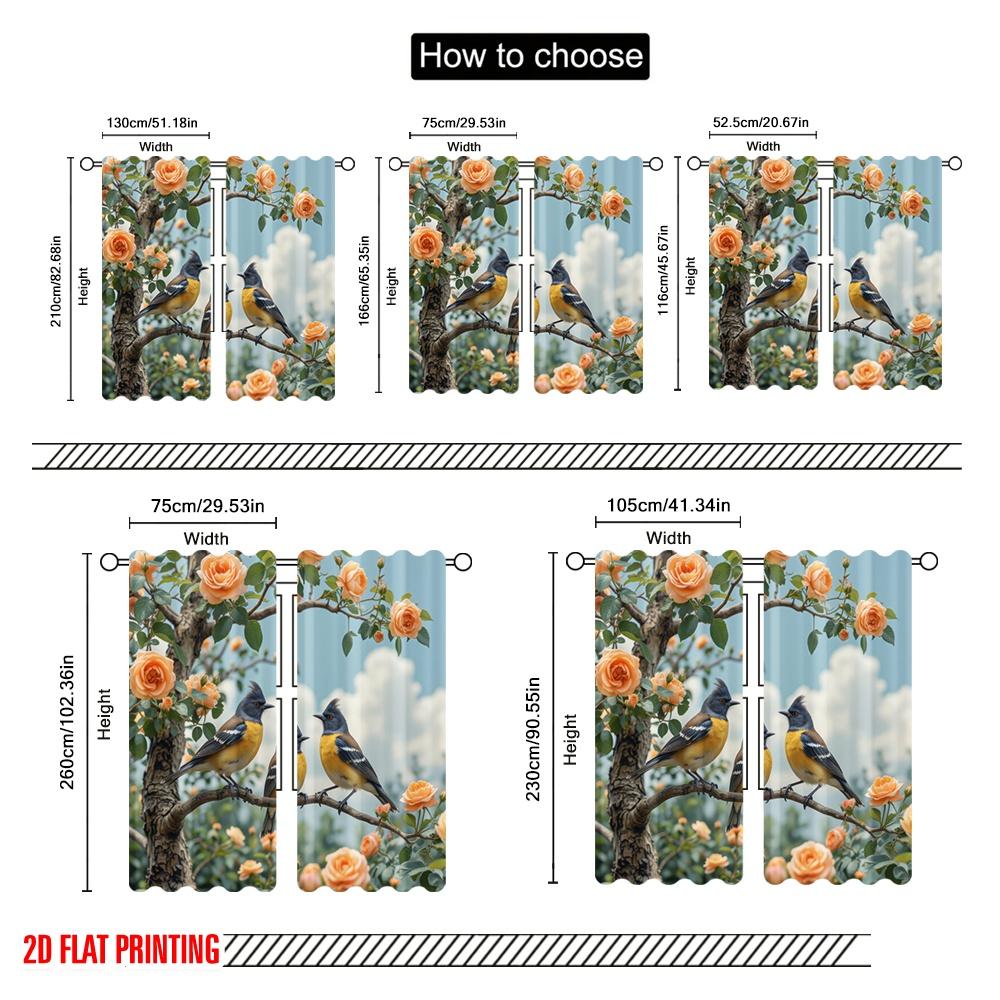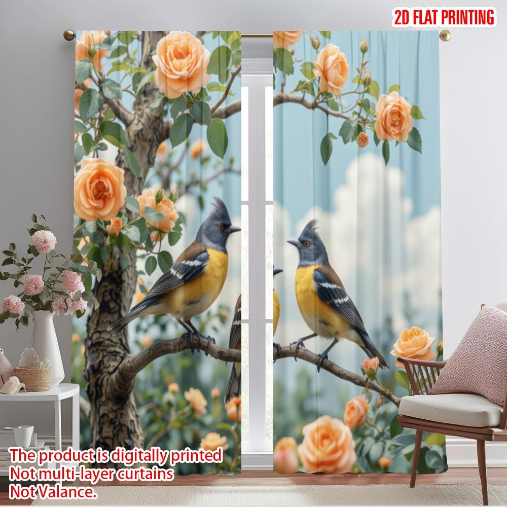 2 шт., 2D печать на плоскости Минималистичные шторы Птицы и цветы Полиэстер тканый (без стержня) Праздничный Ldeal для спальни и гостиной