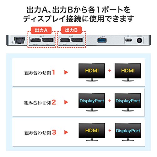 SANWA SUPPLY USB-CVDK6 Док-станция с выделенным портом USB Type-C (Совместимость с HDMI/DisplayPort, Совместимость с PD)