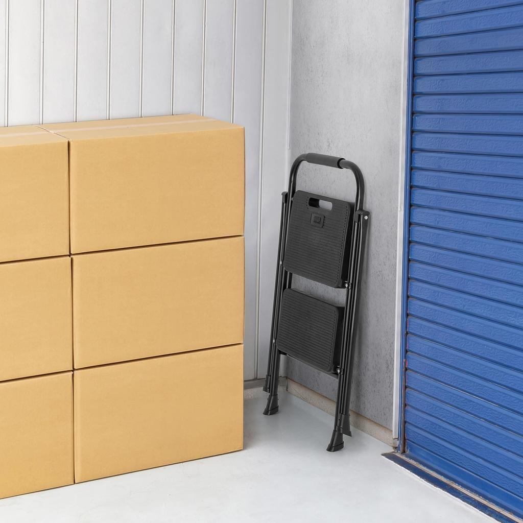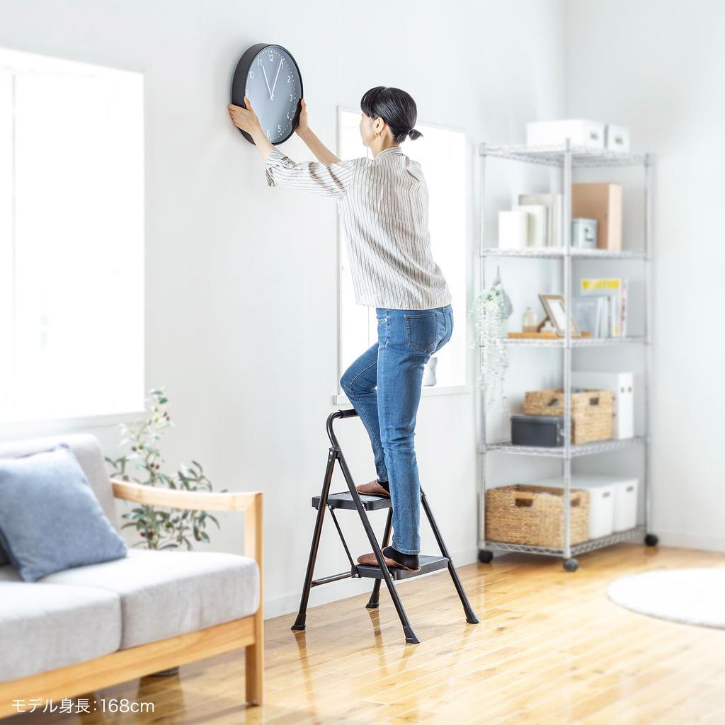SANWA SUPPLY STL-1 Двухступенчатая складная стремянка, грузоподъемность 150 кг, стальная рама, черная