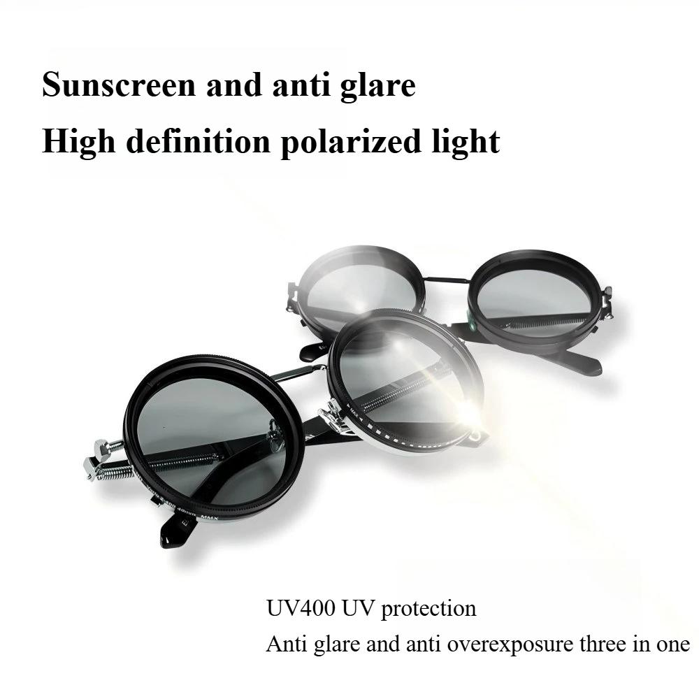Поляризованные круглые солнцезащитные очки ND9 с регулируемым затемнением, мужские и женские, ретро-панк, мужские очки для рыбалки, уличные очки, UV400