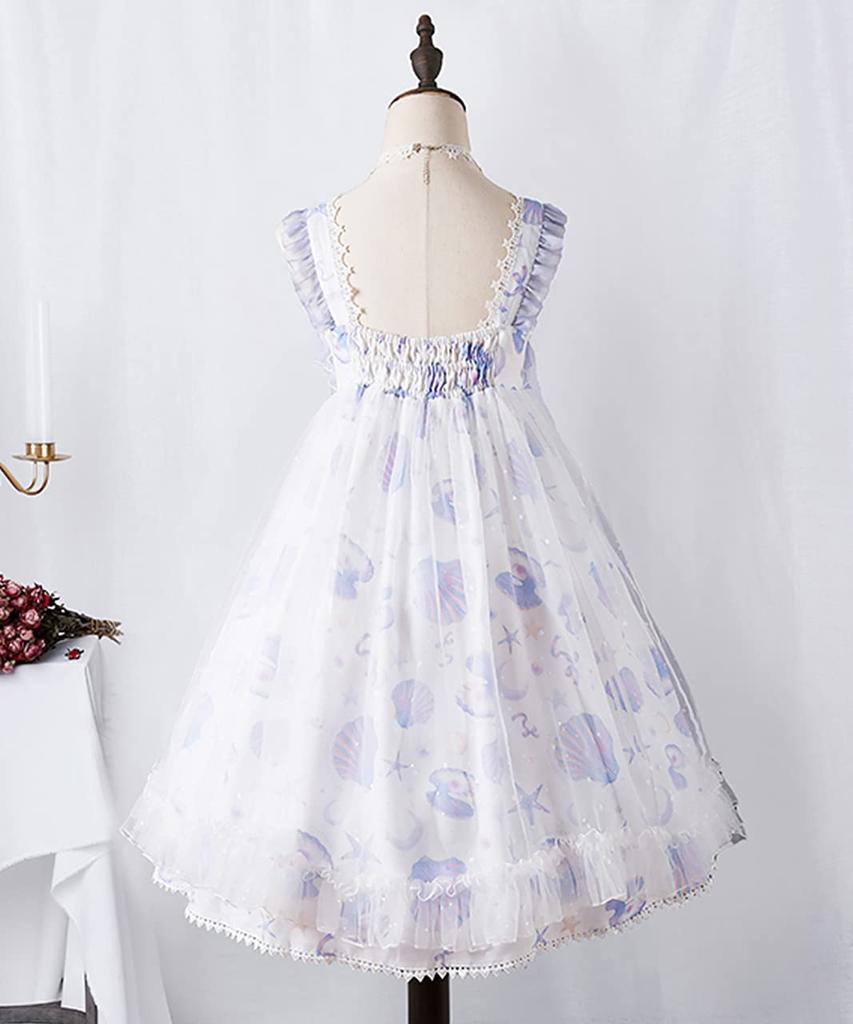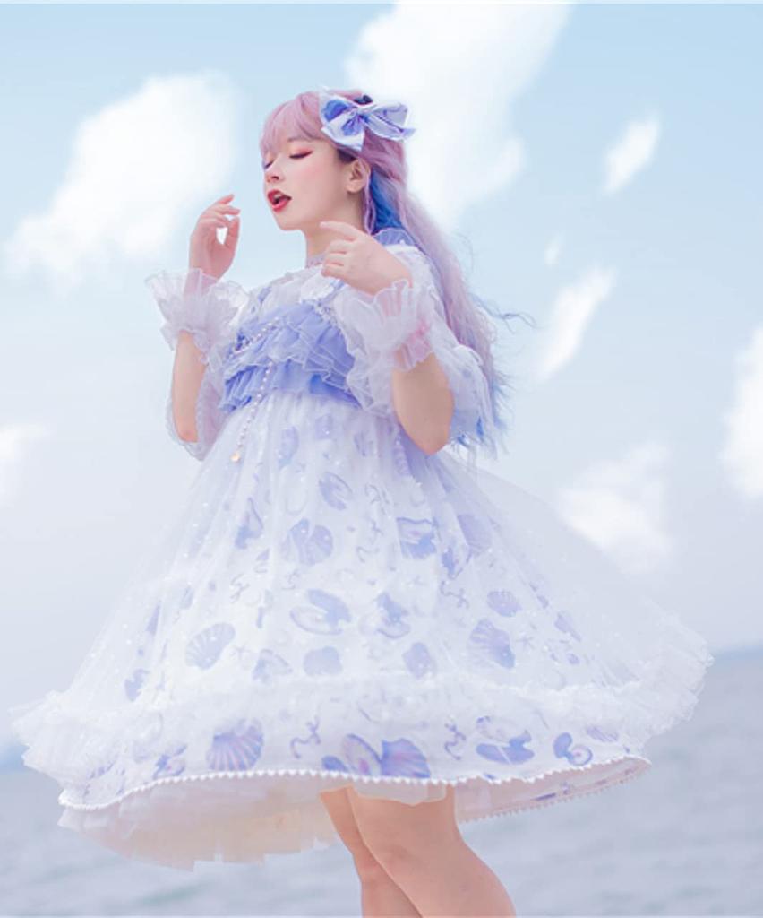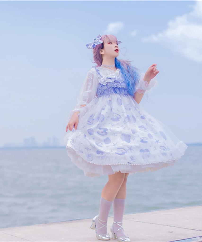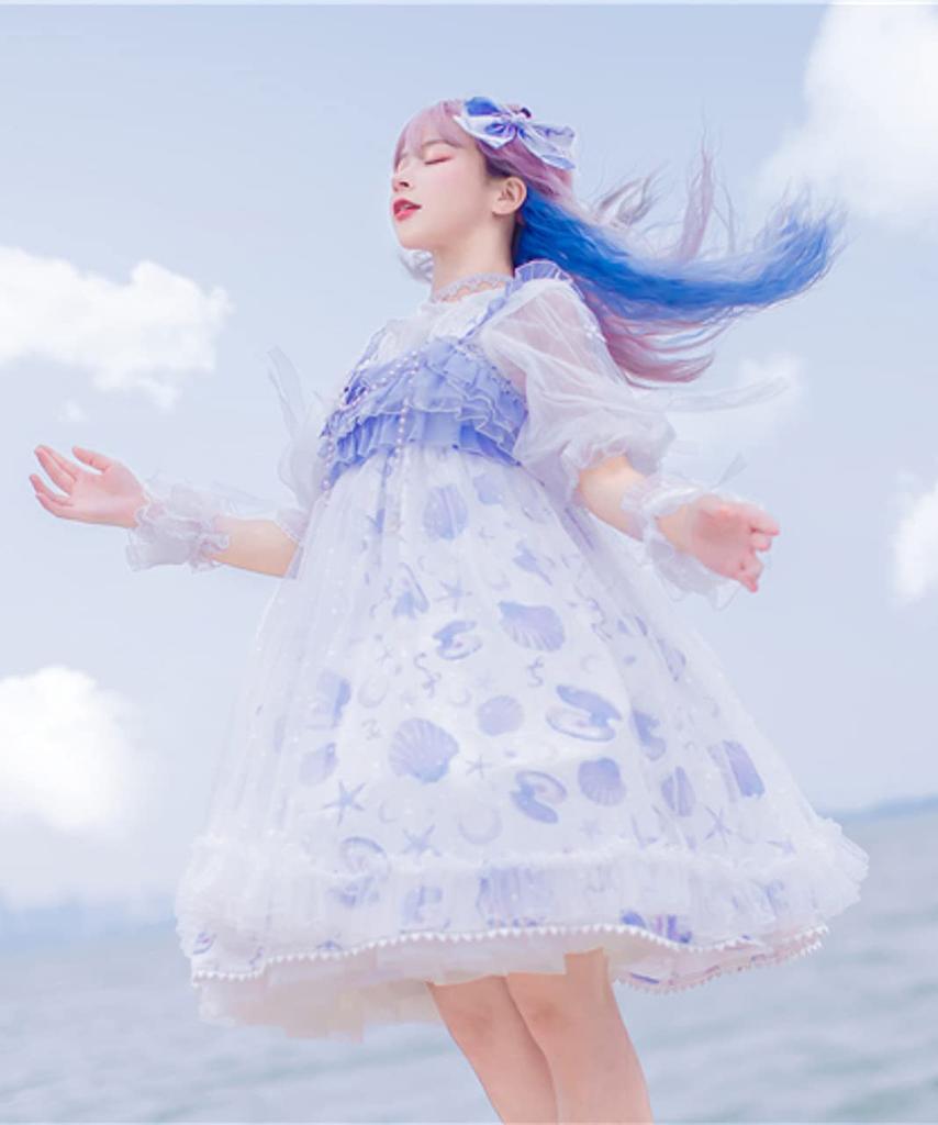 Milky Time Women's Sweet Lolita Dress, Natural Organza Shell Cosplay Costume, Medium (Blue)