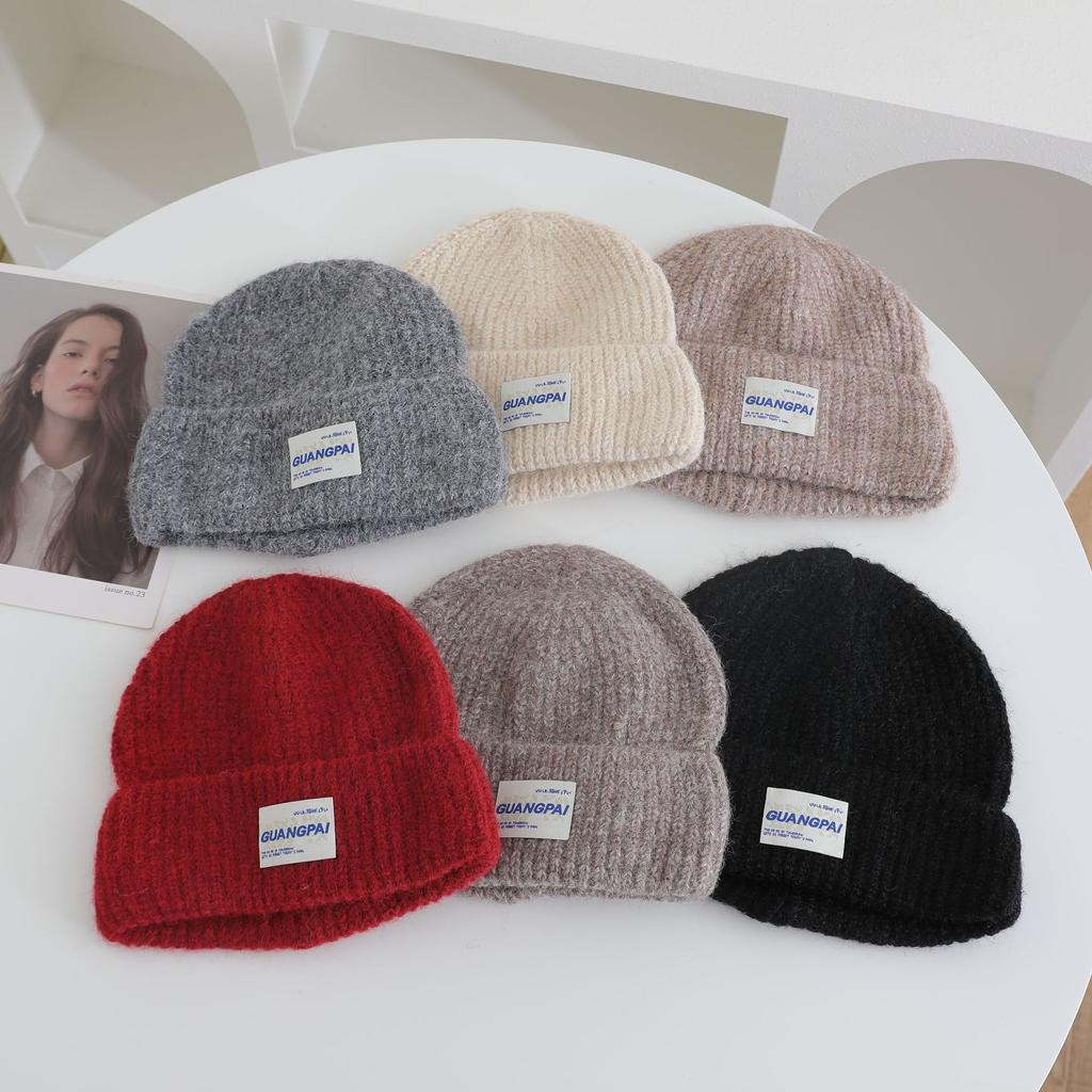 Письмо с надписью Вязаная шапка для женской осенне-зимней новой коллекции Теплая утолщенная шапка от холода, которая хорошо смотрится на лице Маленькая защита ушей