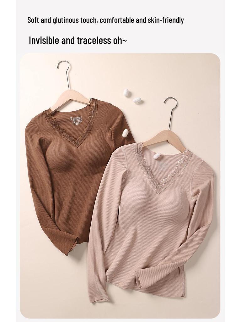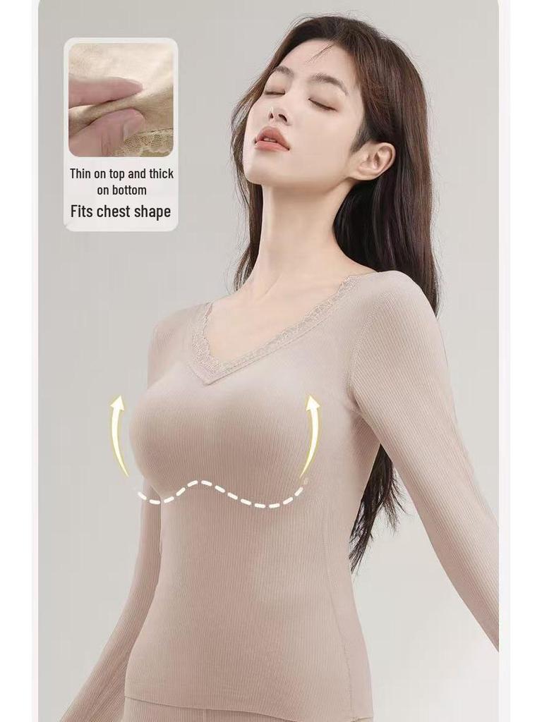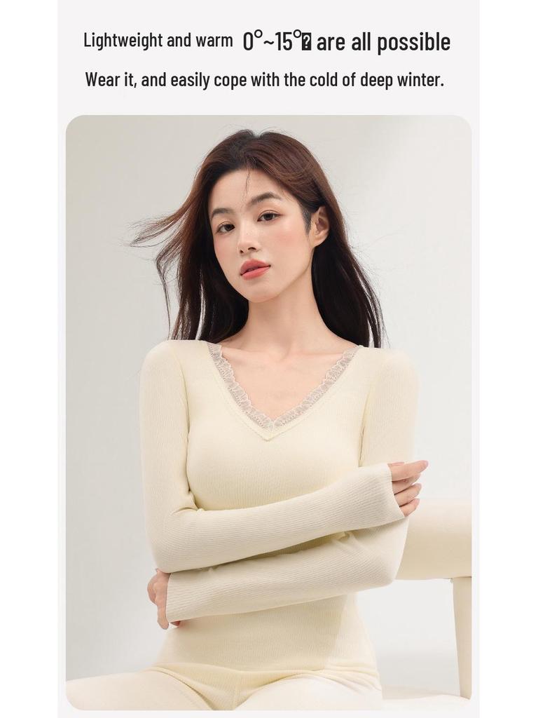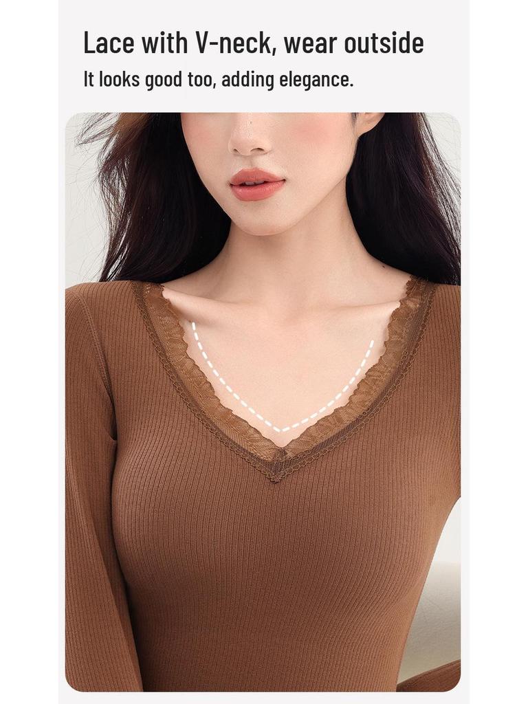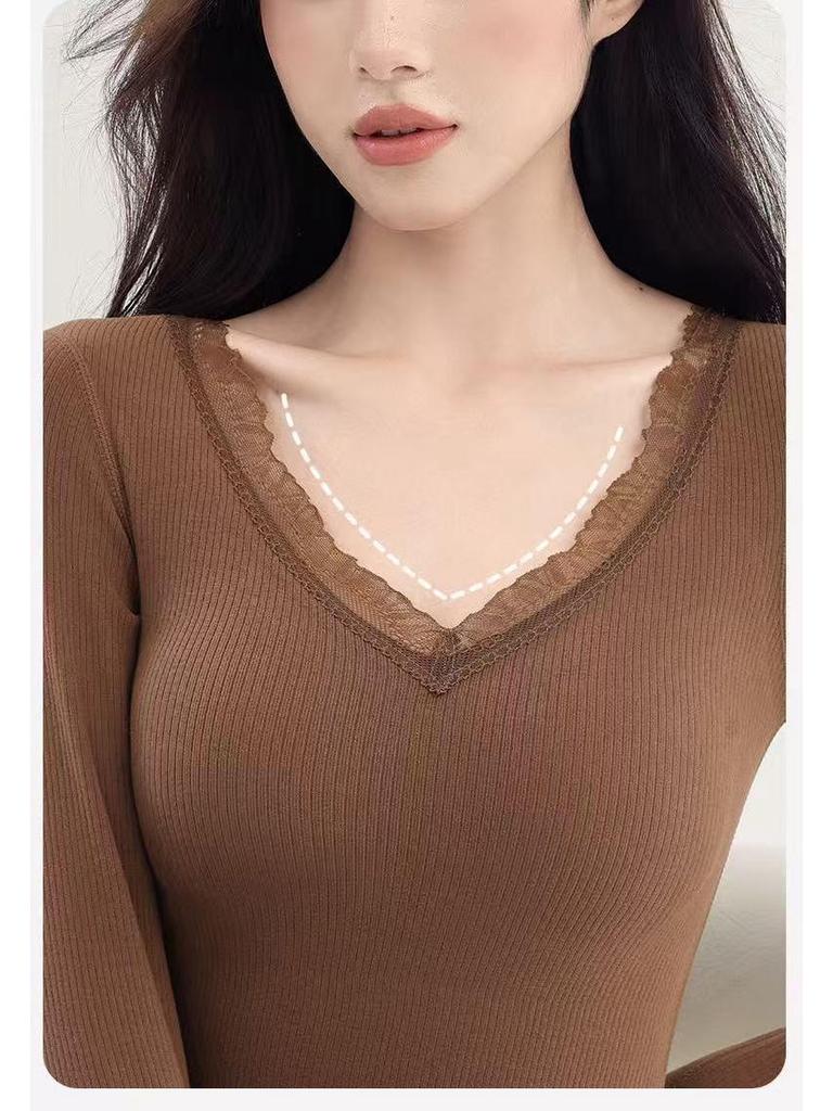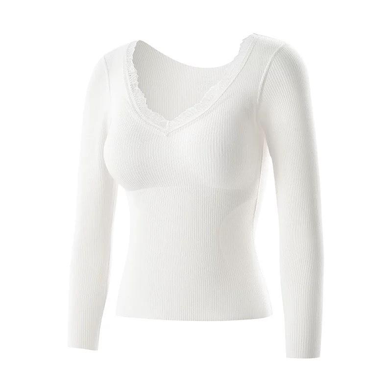Женский кашемировый и шелковый кружевной топ с V-образным вырезом и длинными рукавами, облегающий, комплект