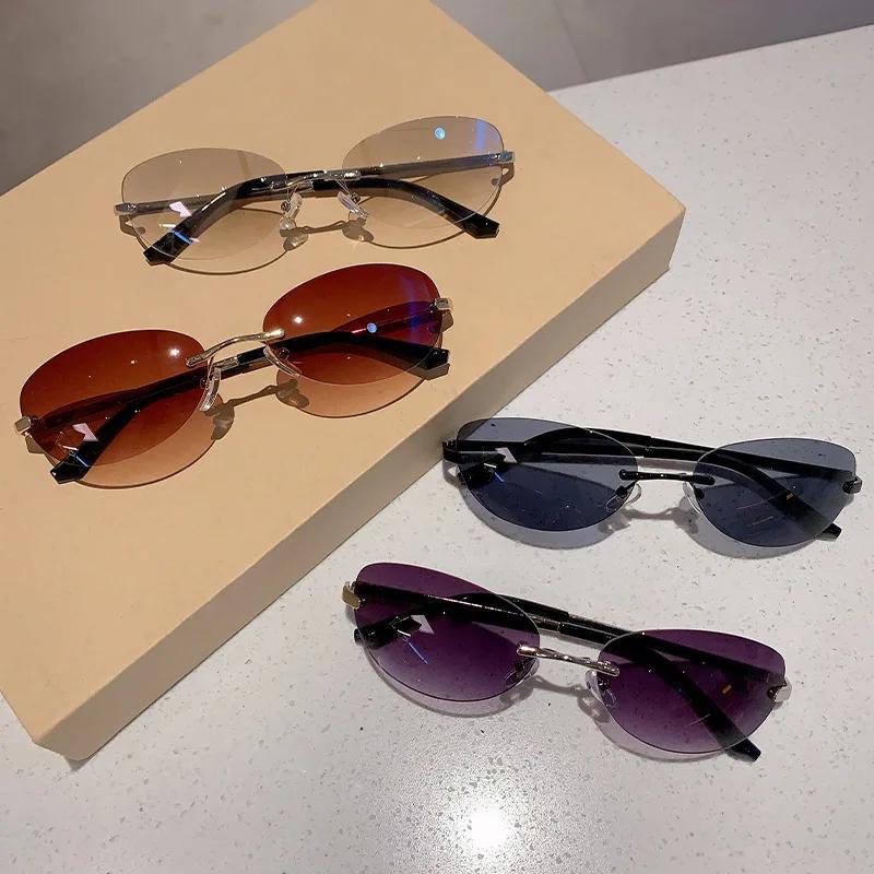 Новые Ретро Модные Бескаркасные Солнцезащитные Очки Кошачий Глаз Женские Винтажные Модные Солнцезащитные Очки Популярные Панк Сексуальные Женские Для Отдыха На Открытом Воздухе