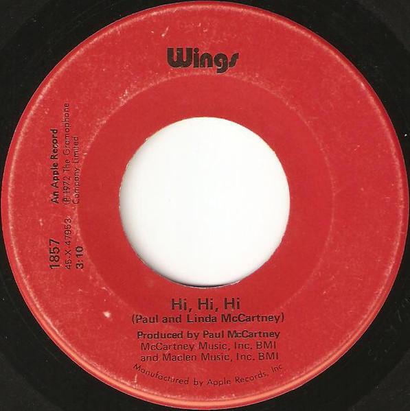 7inch Record WINGS (2) - Hi, Hi, Hi / C Moon 1857 Apple Records 1972 Canada Rock Used