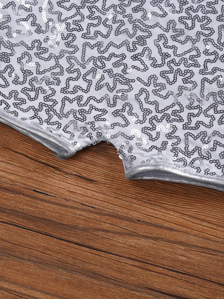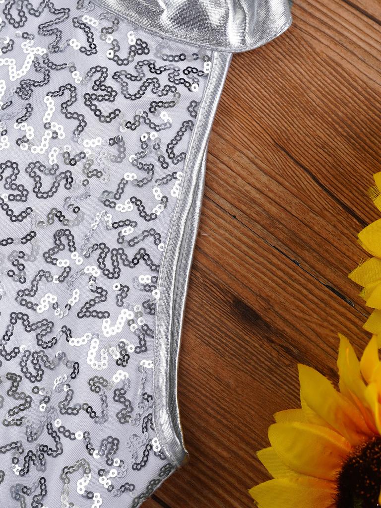 Девочки Стильная Джазовая Одежда для Выступлений Однорукавный Комбинезон с Круглым Вырезом на Спине на Молнии с Блестящими Пайетками