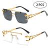Модные квадратные солнцезащитные очки без оправы с двойным мостиком, винтажные женские и мужские солнцезащитные очки UV400