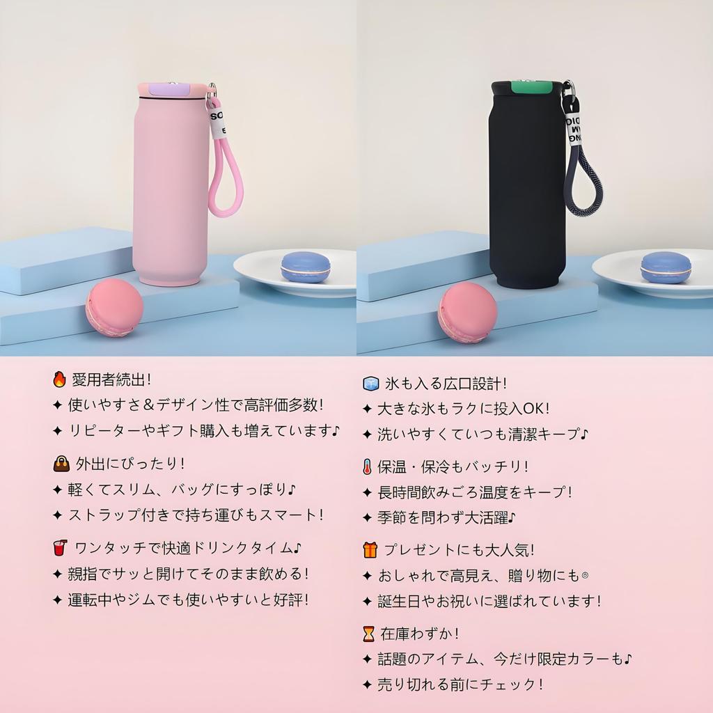 IOLOYU 500ml Stainless Steel Thermos Water Bottle, Large Capacity, Spill-Resistant, with Lid, Stylish, Lightweight, Easy-to-Clean, Vacuum Insulated,