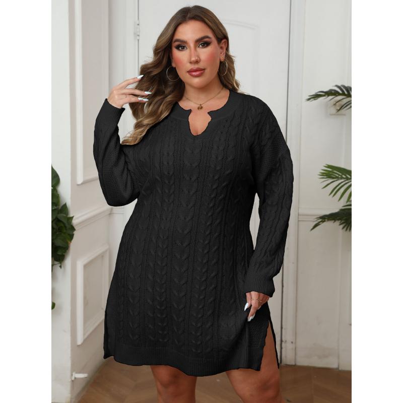 Женское свитерное платье большого размера с V-образным вырезом и кабельной вязкой, однотонное, осенне-зимнее
