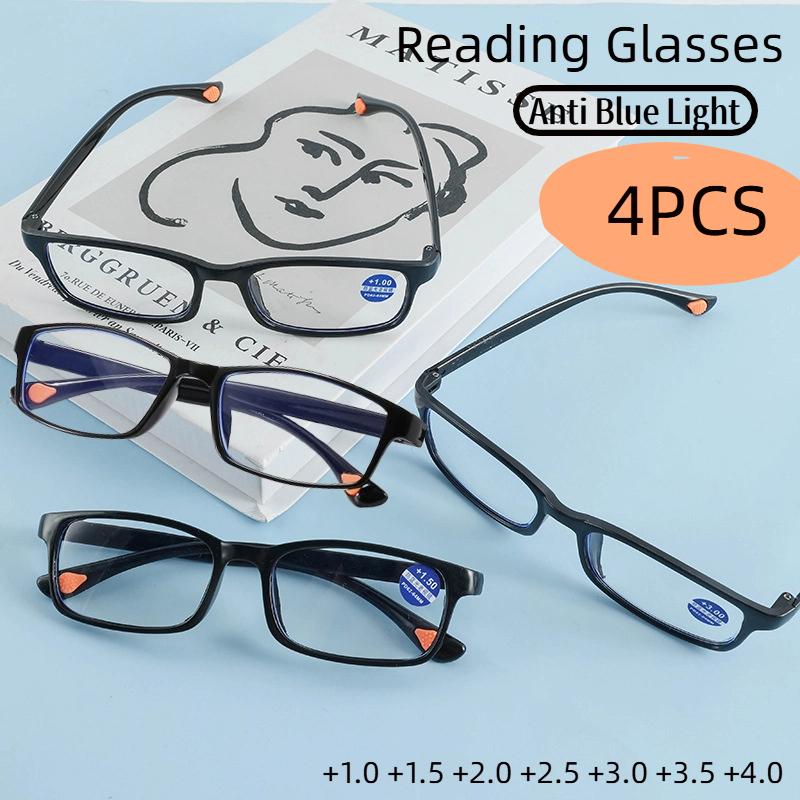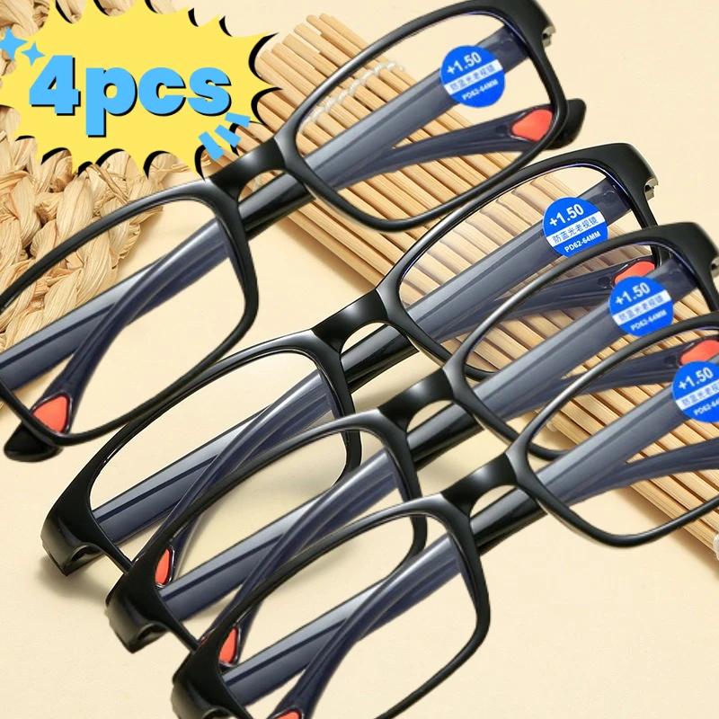 4 шт. Очки для чтения в квадратной оправе, блокирующие синий свет, мужские и женские очки, ультралегкие очки высокой четкости +1.0 1.5 2.0 2.5 3.0 3.5 4.0