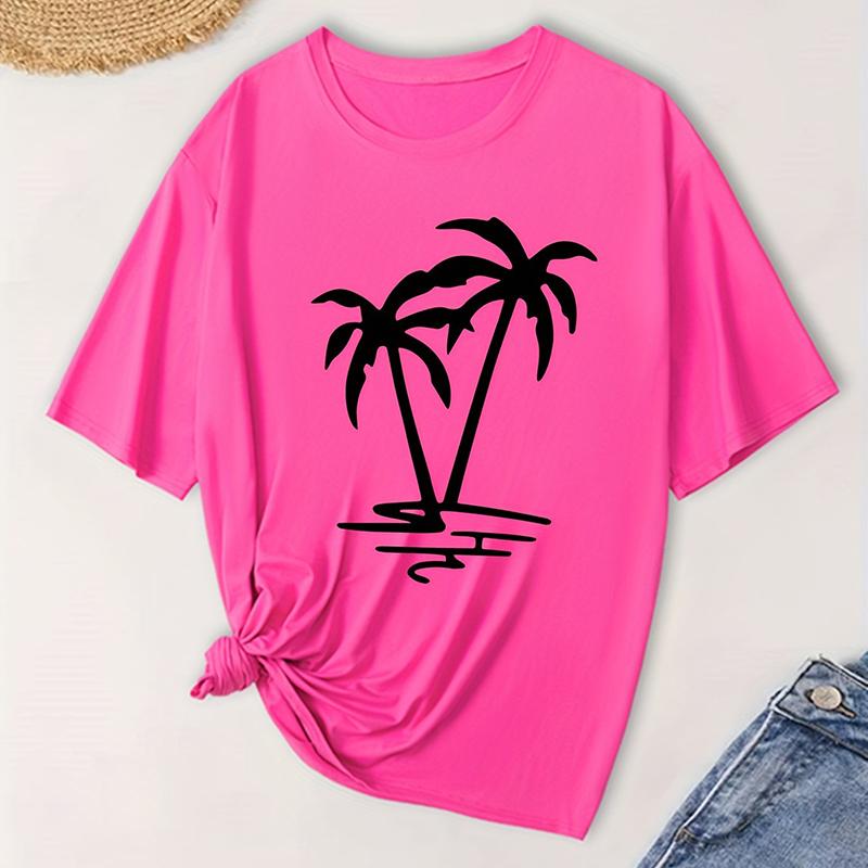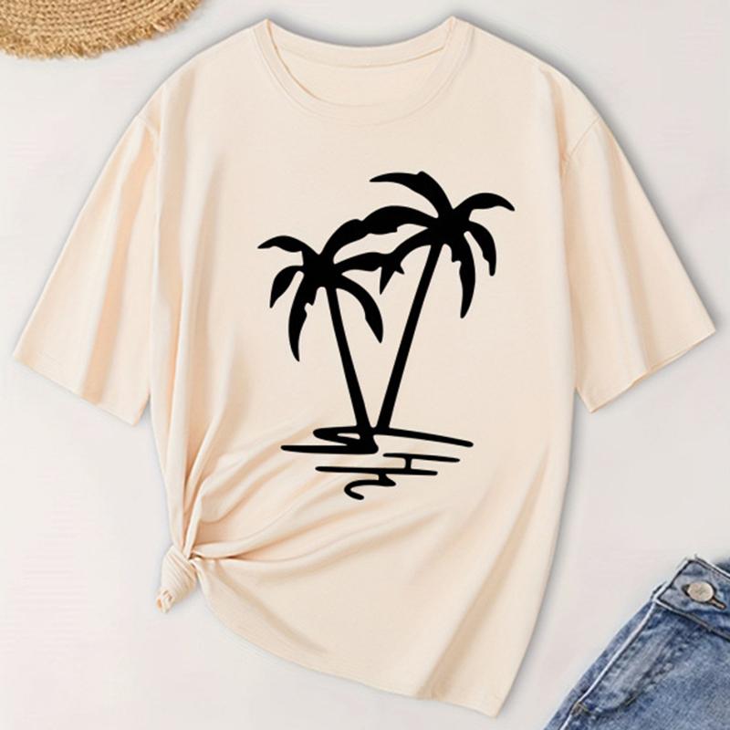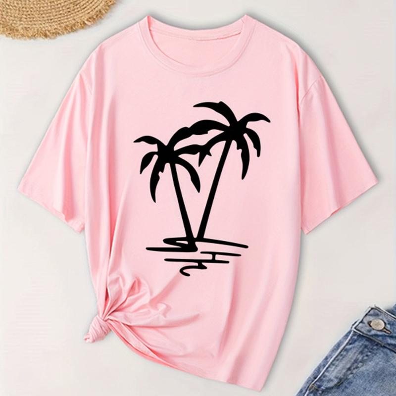 Женская модная футболка с коротким рукавом, летняя, с принтом кокосовой пальмы, повседневная