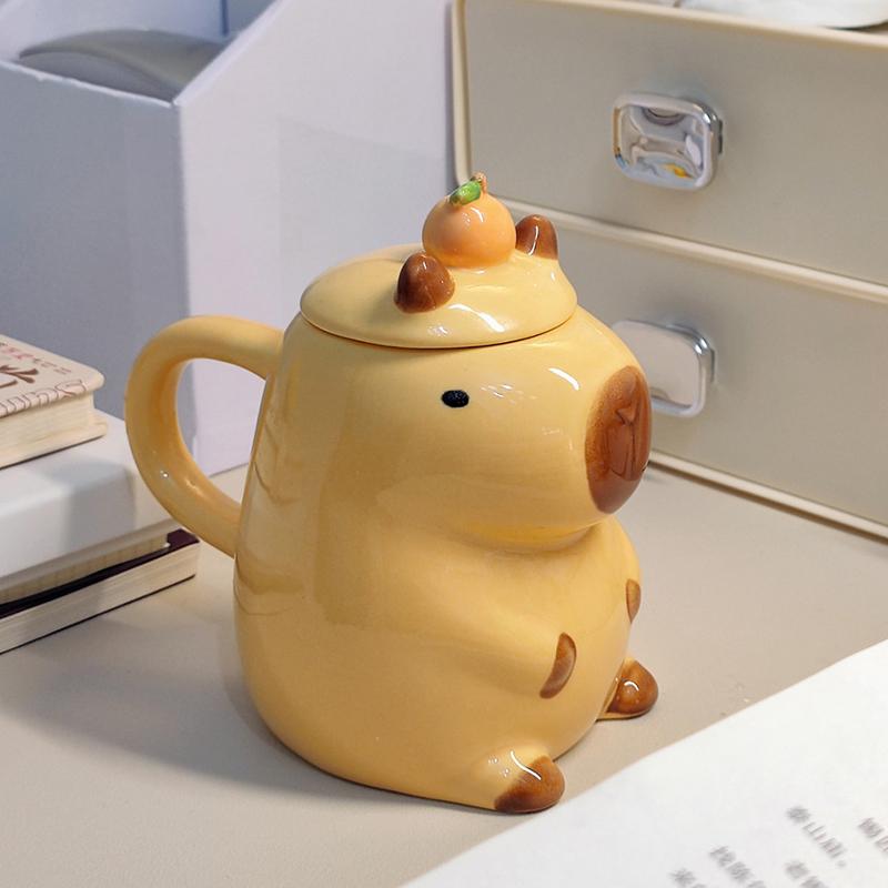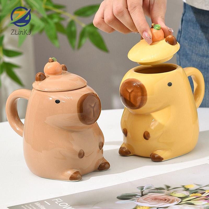 1 шт. 3D Мультяшная Кружка-Капибара для Пары с Ручкой и Крышкой Керамическая Кофейная Кружка