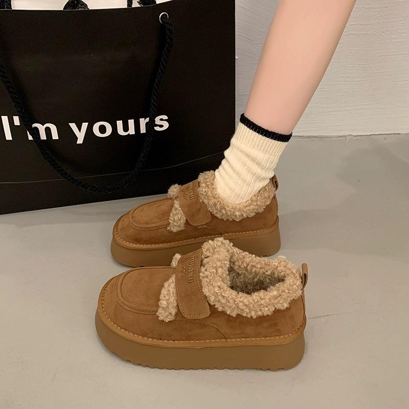 Теплые хлопковые ботинки из овечьей шерсти, женские плоские утолщенные плюшевые зимние ботинки, женские нескользящие ботильоны на толстой подошве, зимние ботинки