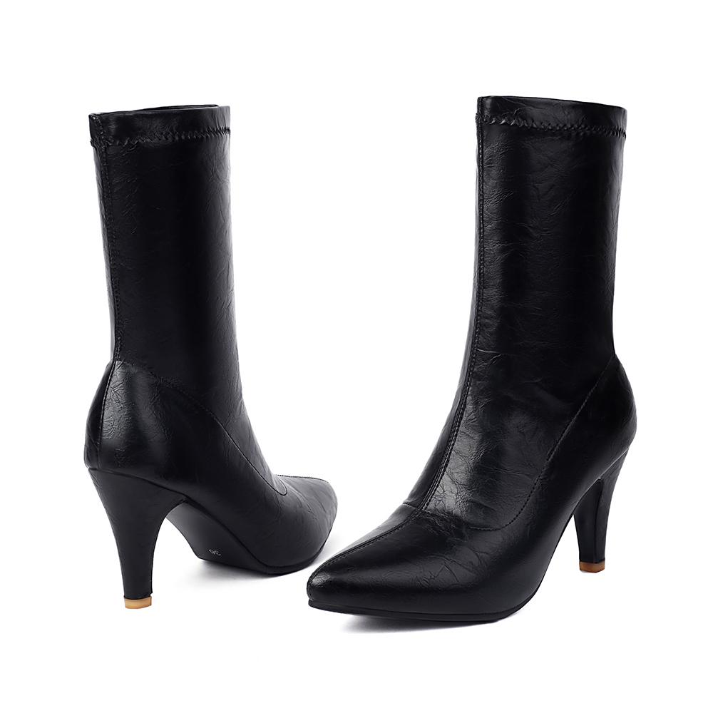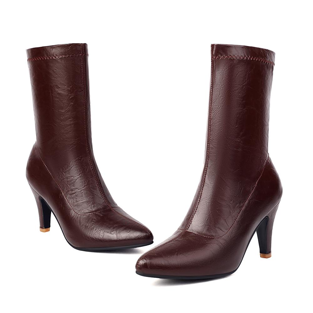 White Red Women Mid Calf Boots Pointed Toe High Spike Heel Small Big Size 33 47
