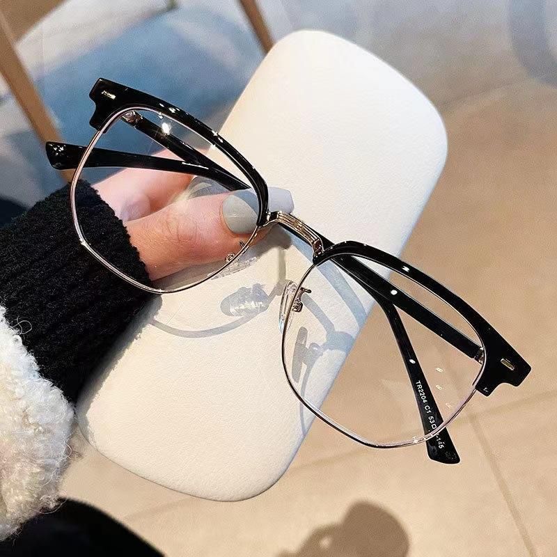 Модные квадратные простые очки унисекс для мужчин и женщин, очки в металлической оправе, многоугольные очки, нежные черные очки с защитой от синего света