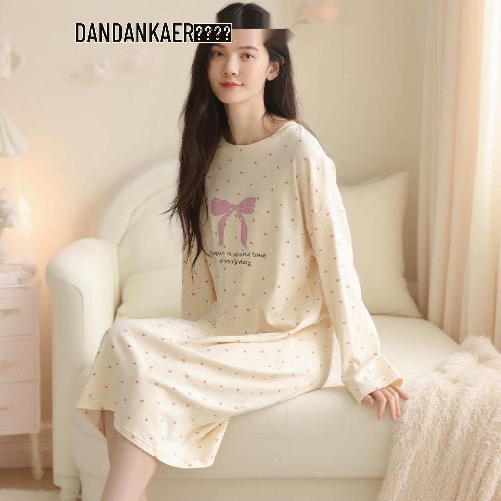 Женская пижама милого стиля с длинным рукавом, средней длины, из хлопка, для осени