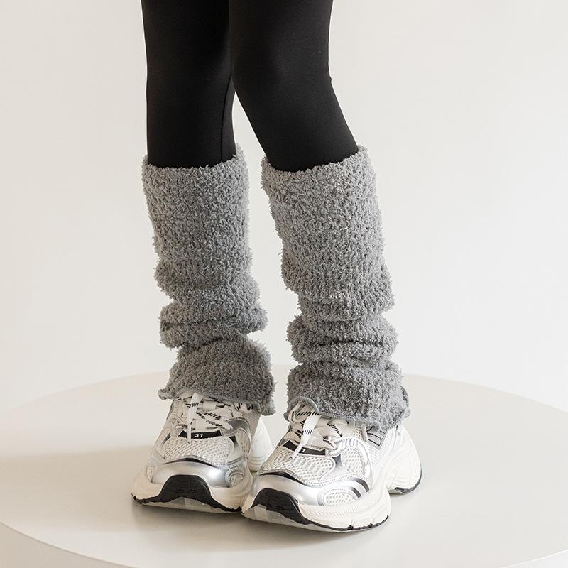 1 пара детских гетр для девочек, повседневные модные пушистые гетры, зимние теплые толстые носки с отворотами, корейский стиль, однотонные носки до икры