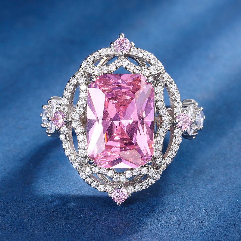 Ювелирные изделия Медное основание Позолоченное Имитация Аквамарина Розовый бриллиант Маленький свежий набор Подвеска Кольцо 10 * 14