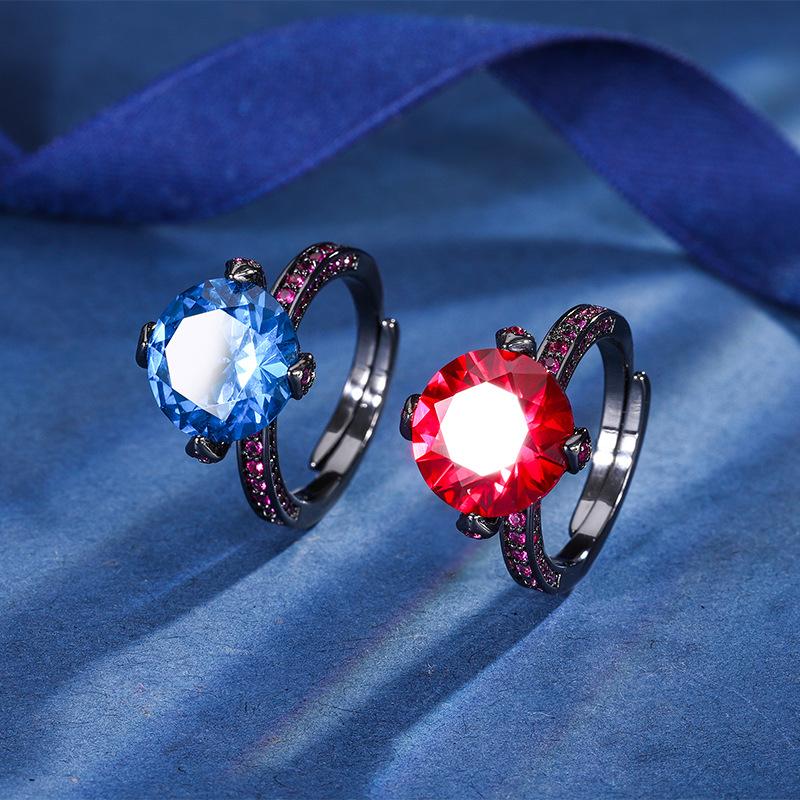 Ювелирные изделия Медное основание Позолоченное Имитация корунда Круглое Черное золото Персонализированное кольцо Женское 12 мм