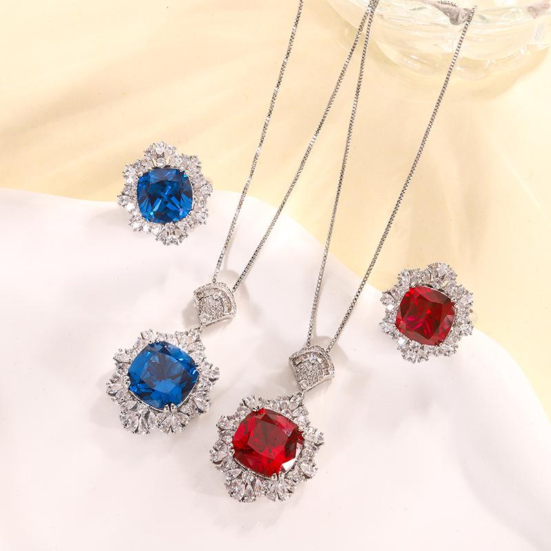 Набор кулонов из имитации драгоценных камней: Красный корунд, Толстый синий шпинель 14 * 14-12 * 12