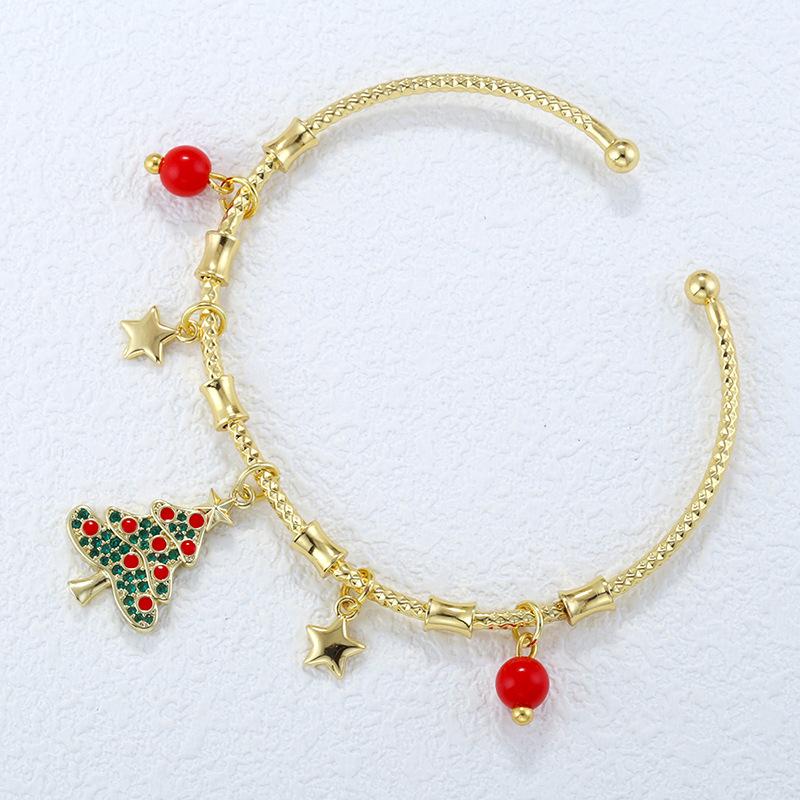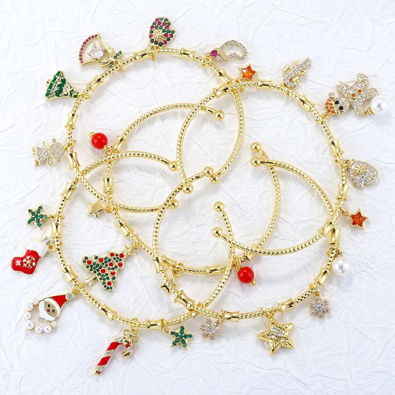 Медный браслет с шипами, бриллиантами, колокольчиками Санты, снежинками, сладкий рождественский открытый браслет