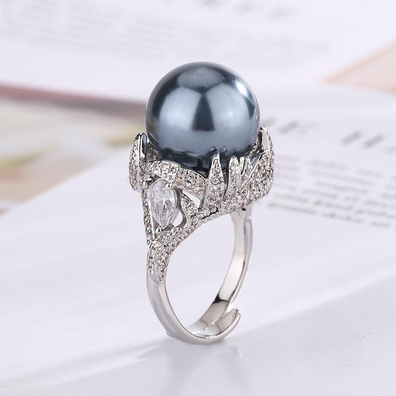 Ювелирные изделия Медь Платина Покрытие Жемчуг Премиум Винтажное Кольцо Женское 14 мм