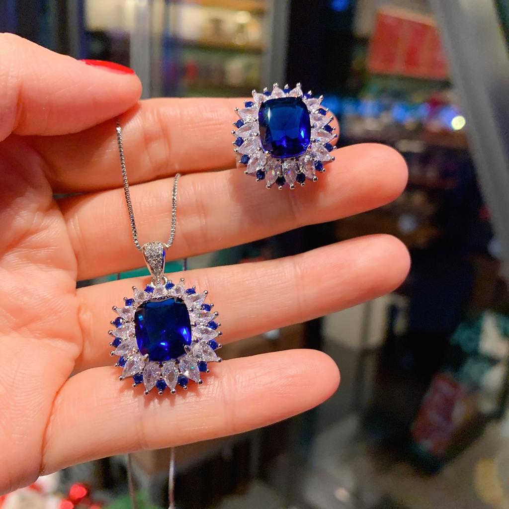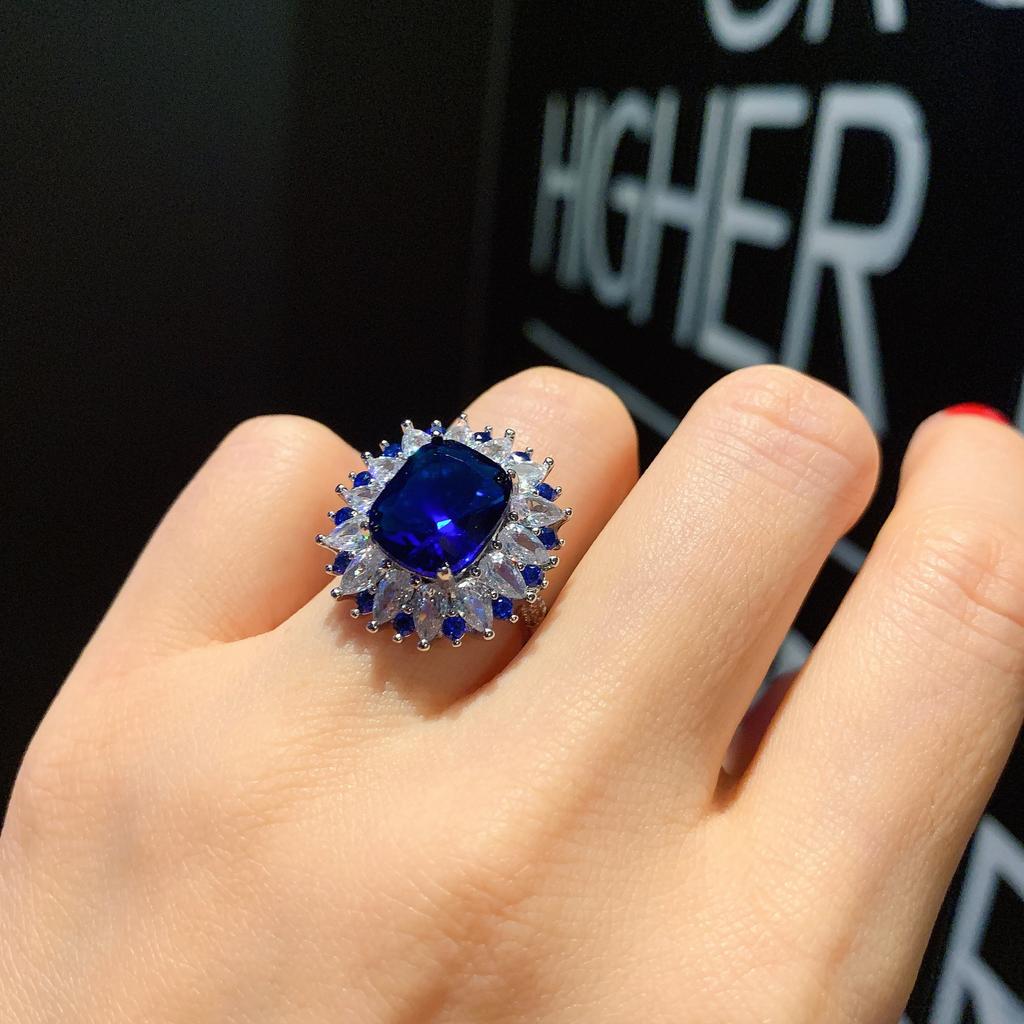 Ювелирные изделия Имитация Геометрический Синий Шпинель Палец Полный Бриллиант Женский Комплект 10 * 12
