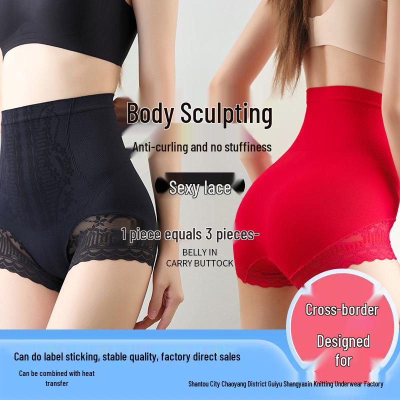Бесшовное нижнее белье с высокой талией, контролирующее живот, приподнимающее бедра, кружевное, формирующее, для женщин