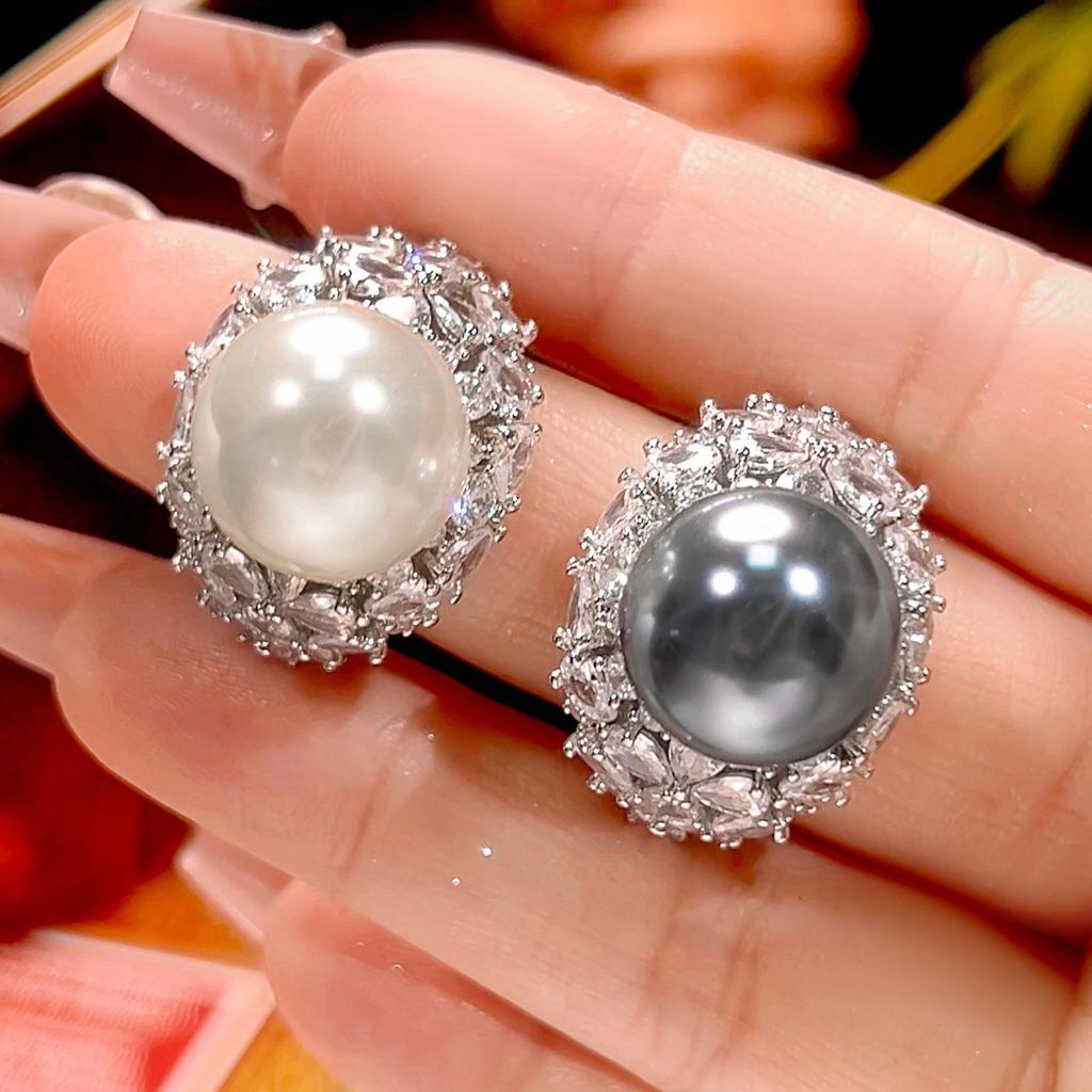 Осенне-зимние украшения, инкрустированное кольцо с австрийским перламутром, женское кольцо с бусинами 14 мм