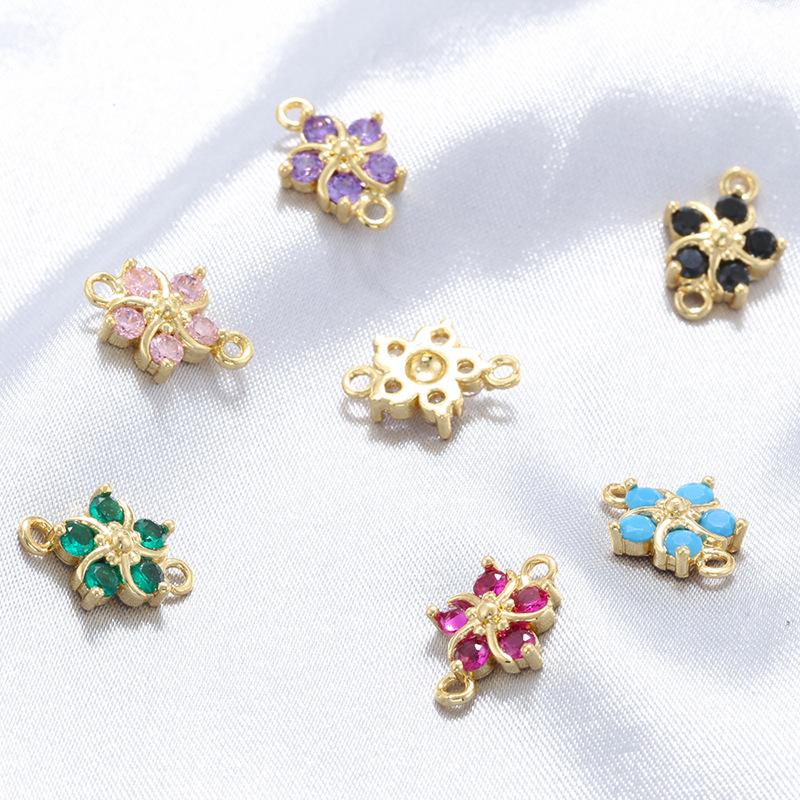 Темперамент Легкая Роскошь Медь Инкрустированная Цветными Бриллиантами Пятилепестковый Цветок Ручной Работы Персонализированный DIY Браслет Ожерелье Соединитель Лепестков Цветка