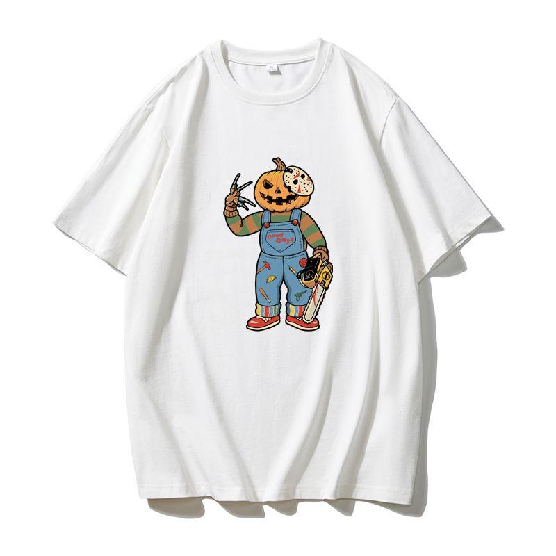 Мужская футболка в стиле ретро на Хэллоуин, свободная хлопковая базовая футболка с коротким рукавом и круглым вырезом от американского модного бренда