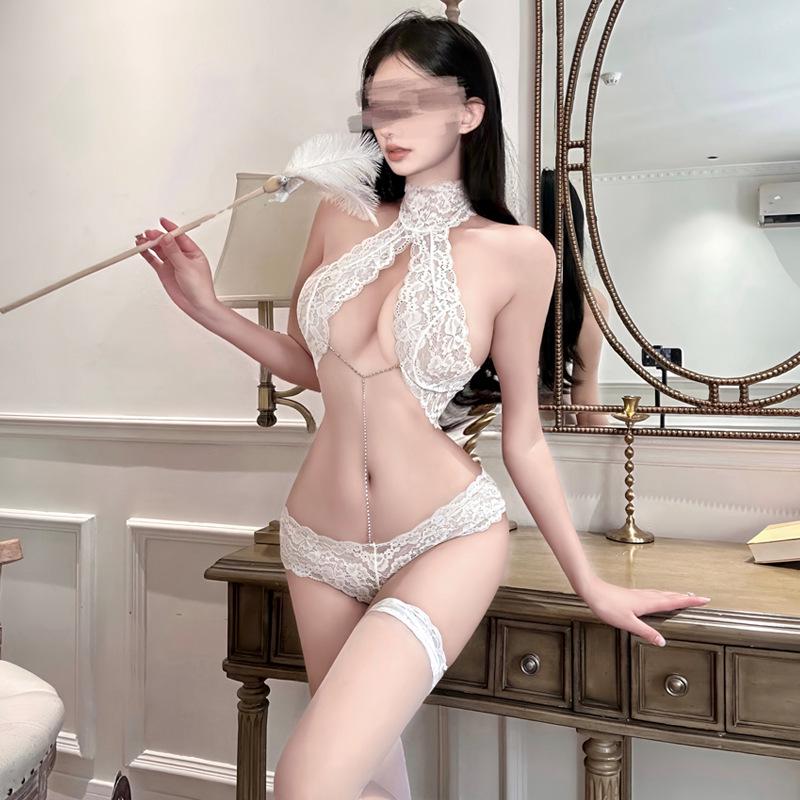 Кружевное боди-халтер Pure Desire: Сексуальный дразнящий комплект с открытой промежностью для маленькой груди