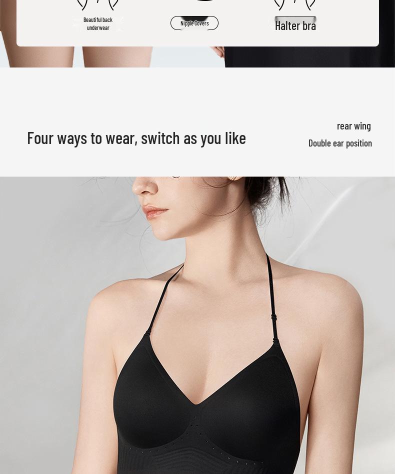 Почувствуйте непревзойденный комфорт и элегантность с этим инновационным предметом женского белья.. Этот бесшовный бюстгальтер, изготовленный из высококачественного нейлона, имеет открытую спину, U-образный вырез и дизайн халтер, создавая шикарный и современный образ под любой одеждой.. Невидимые бретели обеспечивают незаметную поддержку, гарантируя, что бюстгальтер дополнит разнообразные варианты гардероба, оставаясь незаметным.. Этот бюстгальтер сочетает в себе функциональность и стиль, что делает его универсальным дополнением к вашей коллекции нижнего белья.