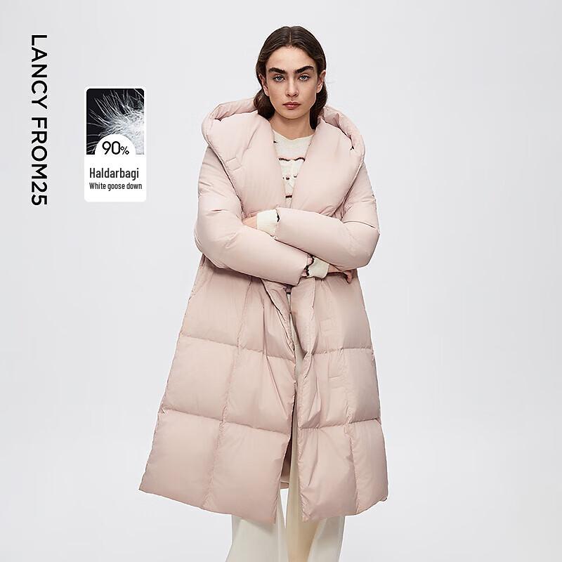 LANCY HORDOBAJI Пуховик средней длины с капюшоном из белого гусиного пуха — купить товар онлайн с бесплатной доставкой по всему миру!