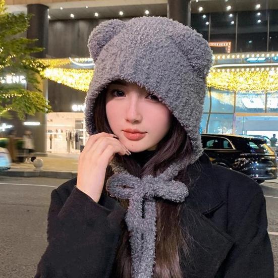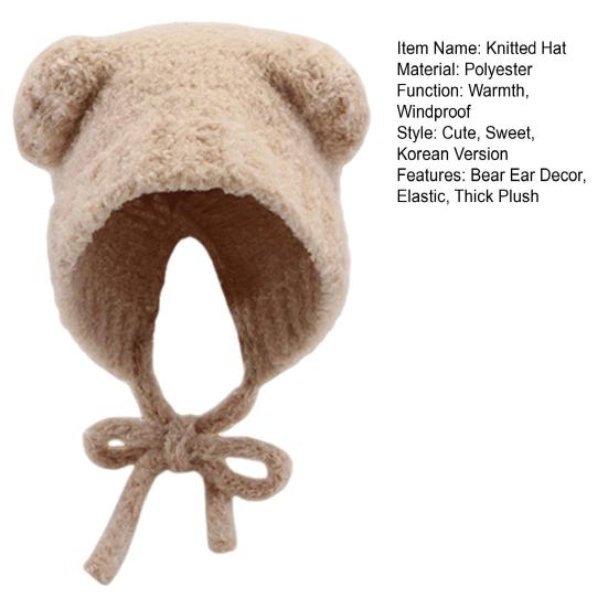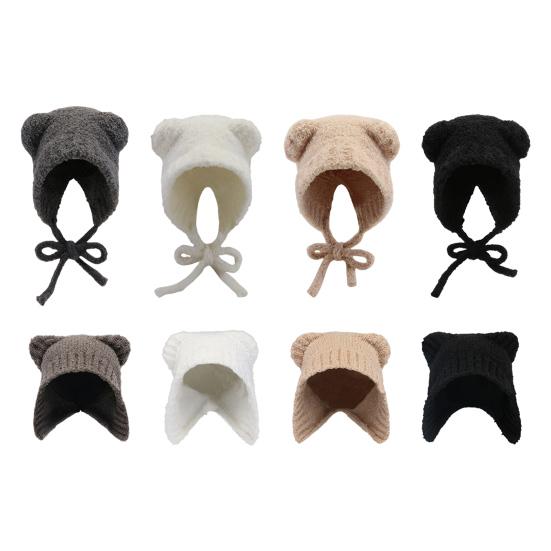 Подчеркните свой стиль и сохраняйте уют с этой вязаной шапкой.. Изготовлен из 100% полиэстера, мягкая ткань обеспечивает удобную посадку.. Эта шапка с шикарным дизайном и плюшевыми ушами медведя предлагается в двух вариантах: бесшнуровая и со шнурком, что обеспечивает универсальность..