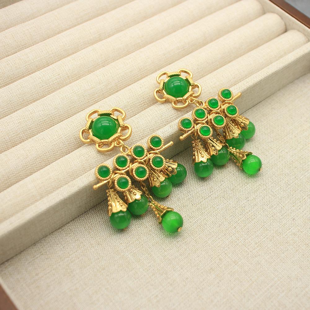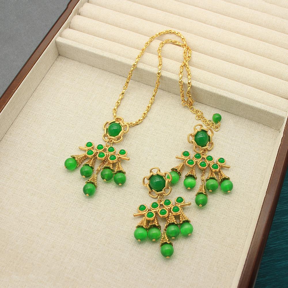 Циндао Средневековые украшения Преувеличенные опаловые серьги Ожерелье Набор Наплечный Медь Покрытая Настоящим Золотом Высококачественные украшения